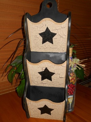 Title (ebay affiliate link): Primitive Wood Mail Holder Tan Crackle Black Star Country Farmhose Decor