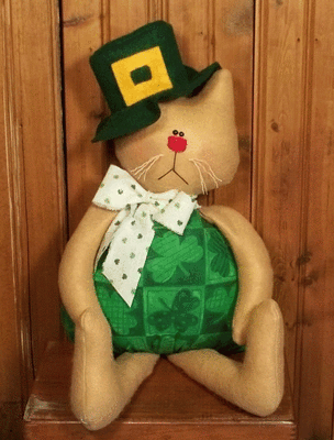 Title (ebay affiliate link): Handmade CHUBBY Irish Raggedy KITTY CAT LEPRECHAUN DOLL St Patricks Shelf Sitter