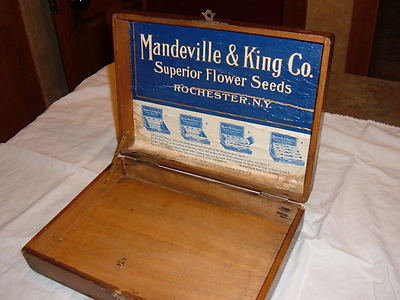 Title (ebay affiliate link): Antique oak finger jointed seed box Mandeville&King Co. Store display