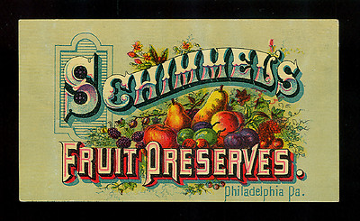 Title (ebay affiliate link): Colorful Victorian Trade Card for Schimmel's Fruit Preserves of Philadelphia, PA
