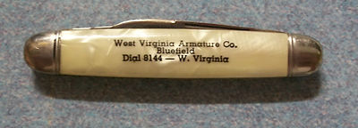 VINTAGE 2 BLADE FOLDING KNIFE ADVERTISING W VA ARMATURE CO BLUEFIELD WV