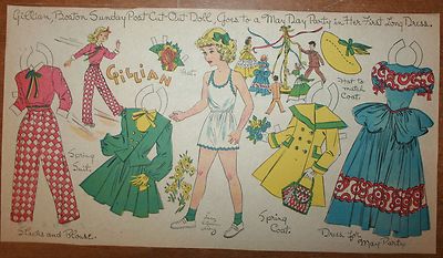 Title (ebay affiliate link): Vintage Antique Boston Sunday Post Cut-Out Doll Newspaper Gillian Long Dress Old