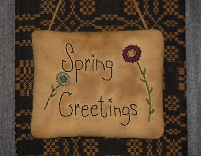 Primitive Stitchery Hanger Ornament ~ Spring Greetings
