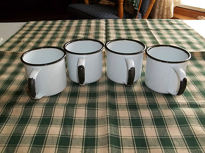 Set of 4 White Enamelware Cups