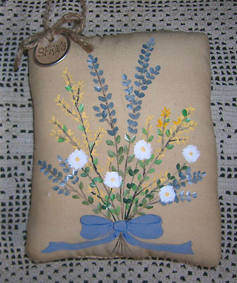 Title (ebay affiliate link): Primitive SPRING BOUQUET Ornie Pillow Forsythia Pussy Willows Wallhanging Tuck