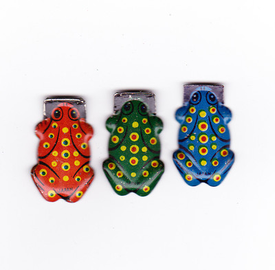 3 1950'S FROG CLICKER TIN TOYS JAPAN DIFFERENT COLORS