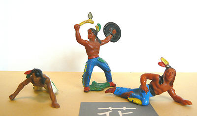 3 DDR INDIAN LOT MADE IN GERMANY POST ELASTOLIN LINEOL DURSO CHIALU SOLDIERS