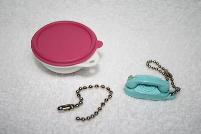 LOT OF 2 VINTAGE TUPPERWARE GIVEAWAYS AQUA TELEPHONE WONDERLIER BOWL KEY CHAINS