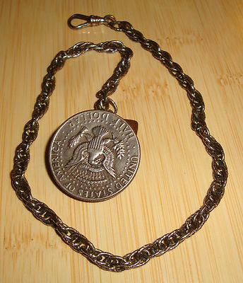 Title (ebay affiliate link): Vtg 13 1/2" Handmade Watch FOB KEY CHAIN w/ 1973 KENNEDY HALF DOLLAR~Coin Crafts