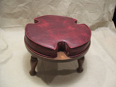 Vintage 3 Leg Round Vinyl & Wood Foot Stool