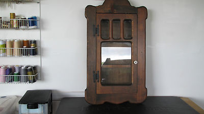 Vintage Pine Wall Curio Cabinet With Glass Front