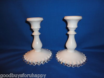 Title (ebay affiliate link): Scare FENTON Art Glass Silver Crest Candleholders Milk Glass 6"T Pair NICE Vtg