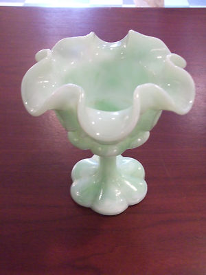 Vintage fire king jadeite (green) milk glass scalloped top goblet +LOOK++