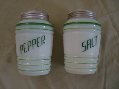 Hazel Atlas Art Deco Salt and Pepper shakers - Milk Glass