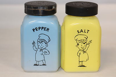 VINTAGE RETRO DECO MILK GLASS SALT & PEPPER SET