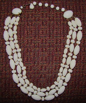 Title (ebay affiliate link): VINTAGE WHITE MILK GLASS SWIRL BEADED CLUSTER NECKLACE GERMANY COSTUME