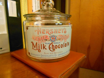 Title (ebay affiliate link): Hershey Milk Chocolate Large Candy Cookie Glass Jar with Lid
