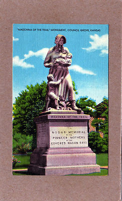 Title (ebay affiliate link): Madonna of the Trail Monument, Council Grove, Kansas Linen Pioneer Postcard