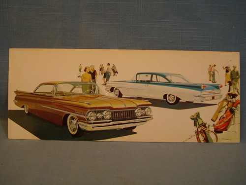 ~VTG PANORAMA POSTCARD OLDSMOBILE DYNAMIC 88 2-DOOR SEDAN DETROIT DEALERSHIP AD