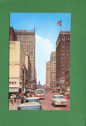 Title (ebay affiliate link): (C178) Main Street Scene Fort Worth Texas Skyline Old Cars Bus 1950s Postcard