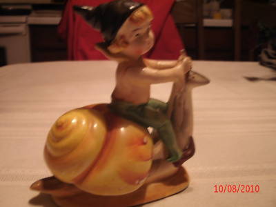 Pixie Boy Riding a Snail, Made in Occupied Japan