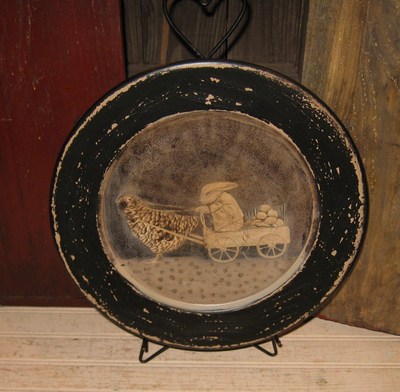 Title (ebay affiliate link): BUNNY Rabbit w/Rooster & Egg Cart*Wood PLATE/Platter*Friend/Family EASTER Gift