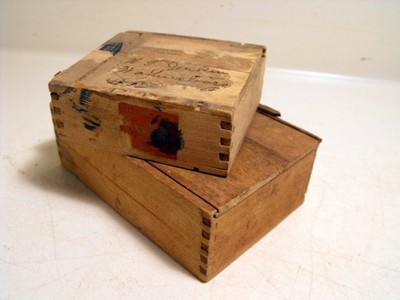Title (ebay affiliate link): 2 Small Vintage Slide-Top Wooden Boxes w Fingerjoint Construction c1920-40s