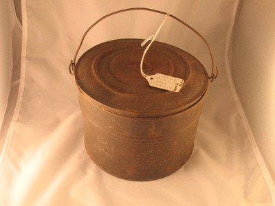 Title (ebay affiliate link): ANTIQUE TIN SMALL ROUND LUNCH PAIL WITH HANDLE AND LID