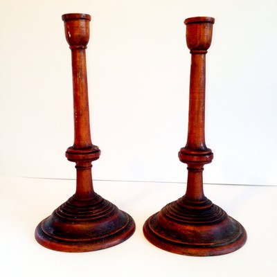 Title (ebay affiliate link): PAIR OF ANTIQUE WOODEN PRIMITIVE CANDLESTICKS EARLY CANDLE HOLDERS 19th CENTURY