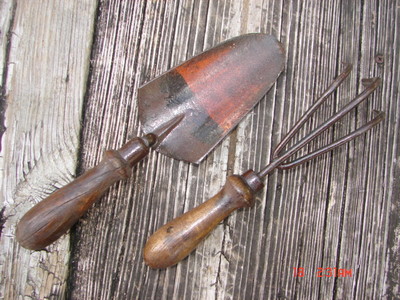 Title (ebay affiliate link): 2 OLD MATCHING GARDEN TOOLS STEEL WOOD ORIGINAL RED PAINT