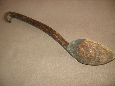 ANTIQUE PRIMITIVE WOODEN HAND CARVED SPOON OTTOMAN TURKISH EARLY 19C.