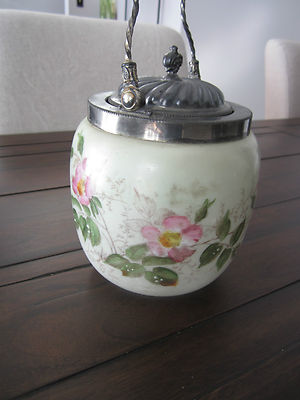 Title (ebay affiliate link): ANTIQUE VICTORIAN FLORAL MILK GLASS BISCUIT JAR SILVER LID HANDLE