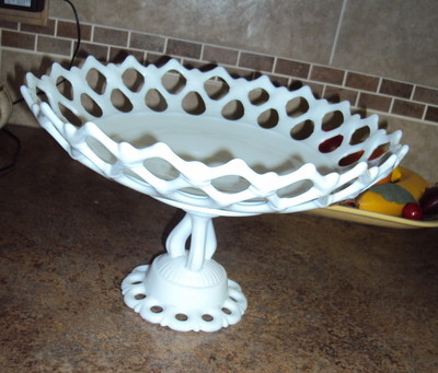 vtg Westmoreland Doric Lace Pattern White Milk Glass Cake Stand fruit bowl nice