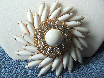 Title (ebay affiliate link): VTG. SIGNED JUDY LEE MILKGLASS AND CLEAR RHINESTONE BROOCH PRISTINE!!!!