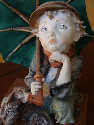 Title (ebay affiliate link): VINTAGE ITALIAN CAPODIMONTE PORCELAIN FIGURINE BOY SITTING W/ DOG UNDER UMBRELLA