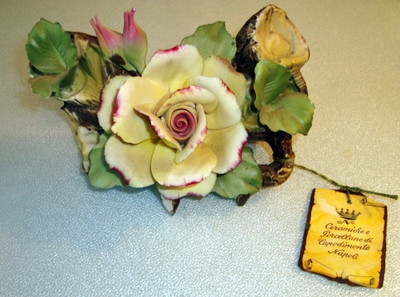 Title (ebay affiliate link): CAPODIMONTE YELLOW ROSE WITH TWO BUDS NAPOLI PORCELAIN CENTER PIECE