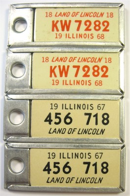 Vintage ~4 DAV Keychain LICENSE PLATES ~2 Pairs MATCHED~ 1967 &1968~ Illinois