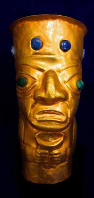 Title (ebay affiliate link): Moche Gold Anthropomorph Jewel Encrusted Cup-Museum Replica