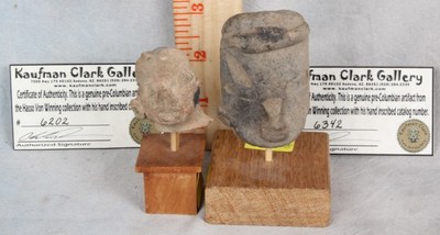 L10 PRE COLUMBIAN TEOTIHUACAN 300 AD ARTIFACTS 2 BUSTS CERTIFICATES VON WINNING