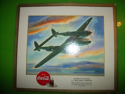Title (ebay affiliate link): 1940s COCA COLA WW II LOCKHEED P-38 LIGHTNING- US ARMY-PURSUIT INTERCEPTOR PRINT