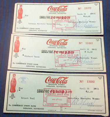 Title (ebay affiliate link): VTG LOT 1961 COCA COLA CHECKS LEBANON TENNESSEE UNIQUE OLD RARE COKE ADVERTISING