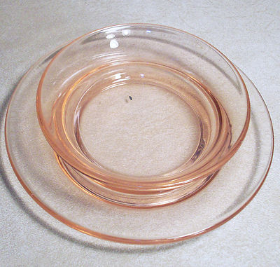 Title (ebay affiliate link): PINK GLASS Bowl w Attached Underplate DUNCAN MILLER Condiment Serving Dish
