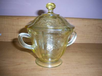 Title (ebay affiliate link): Depression glass- Madrid amber- sugar bowl with lid