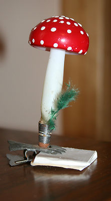 Title (ebay affiliate link): 1920s Flame Mushroom on Clip. Tucksheer Greens. Glass German Ornament.