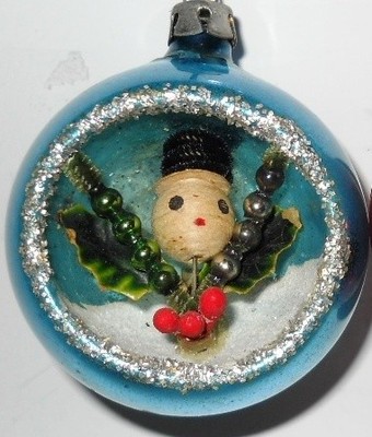 Title (ebay affiliate link): VTG DIORAMA 3D SPUN COTTON SNOWMAN SCENE MERCURY GLASS FEATHER TREE ORNAMENT