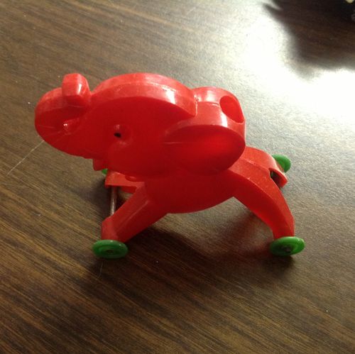 Title (ebay affiliate link): Vintage Rosen Plastic Elephant Pull Toy with wheels candy holder.