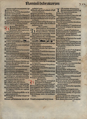 Title (ebay affiliate link): 1484 Incunabula Medieval Latin Bible Leafs LEXICON "H/I" + 9 Initials, #392 #393