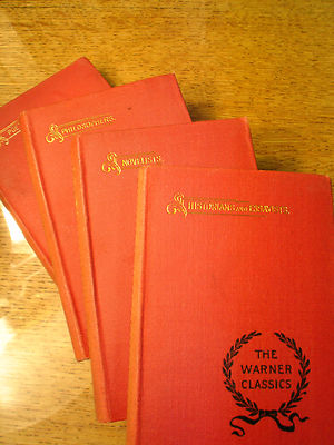 Title (ebay affiliate link): 1897 WARNER CLASSICS 4 VOLS DARWIN EMERSON GIBBON BALZAC BYRON HAWTHORNE MORE