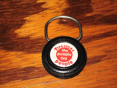 Vintage FIRESTONE Button Key Ring Keychain