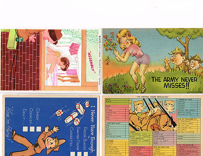 4 Card Lot, Military Comics, WWII, Checklist, Artist Dudley, Peeping Tom!!